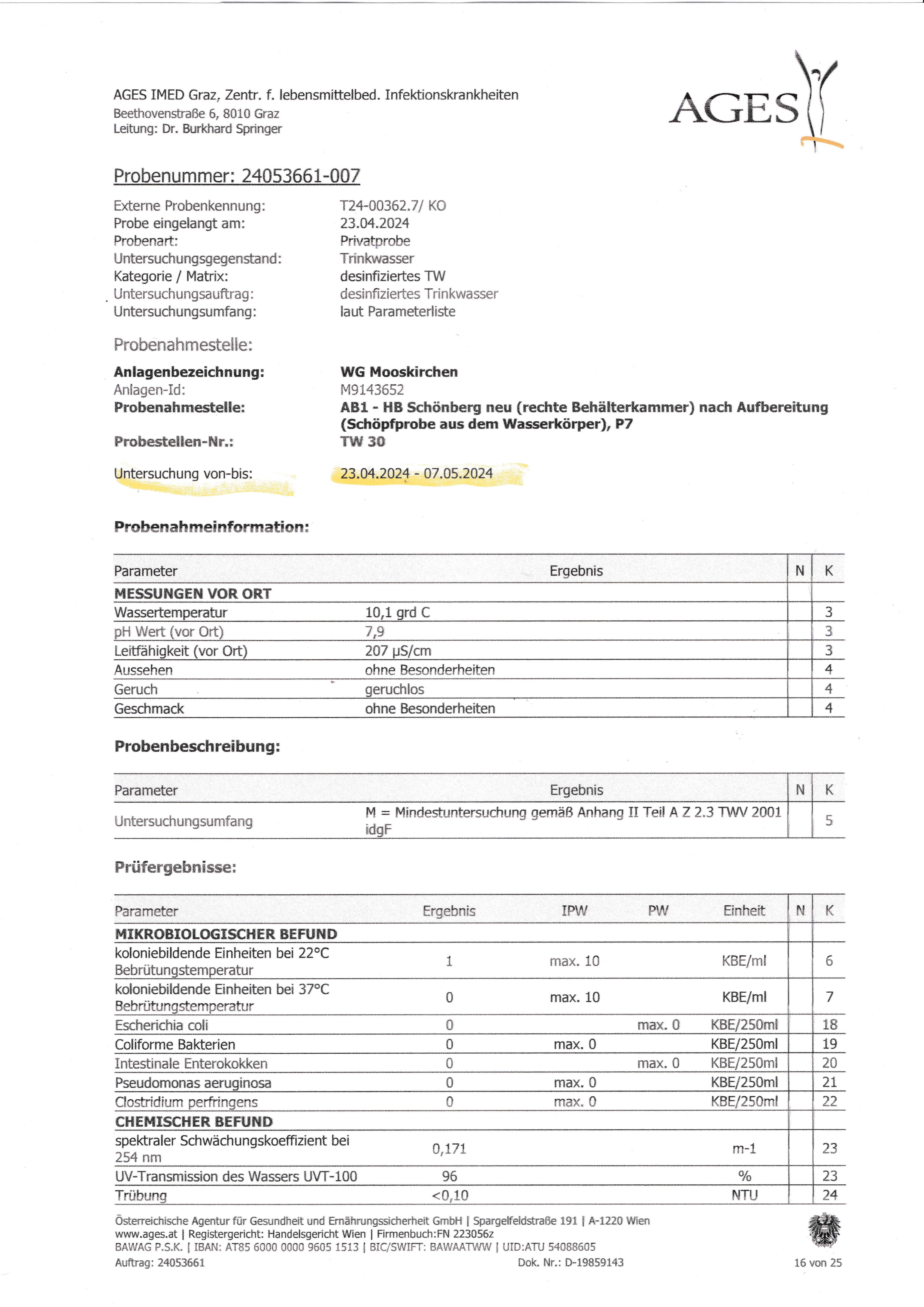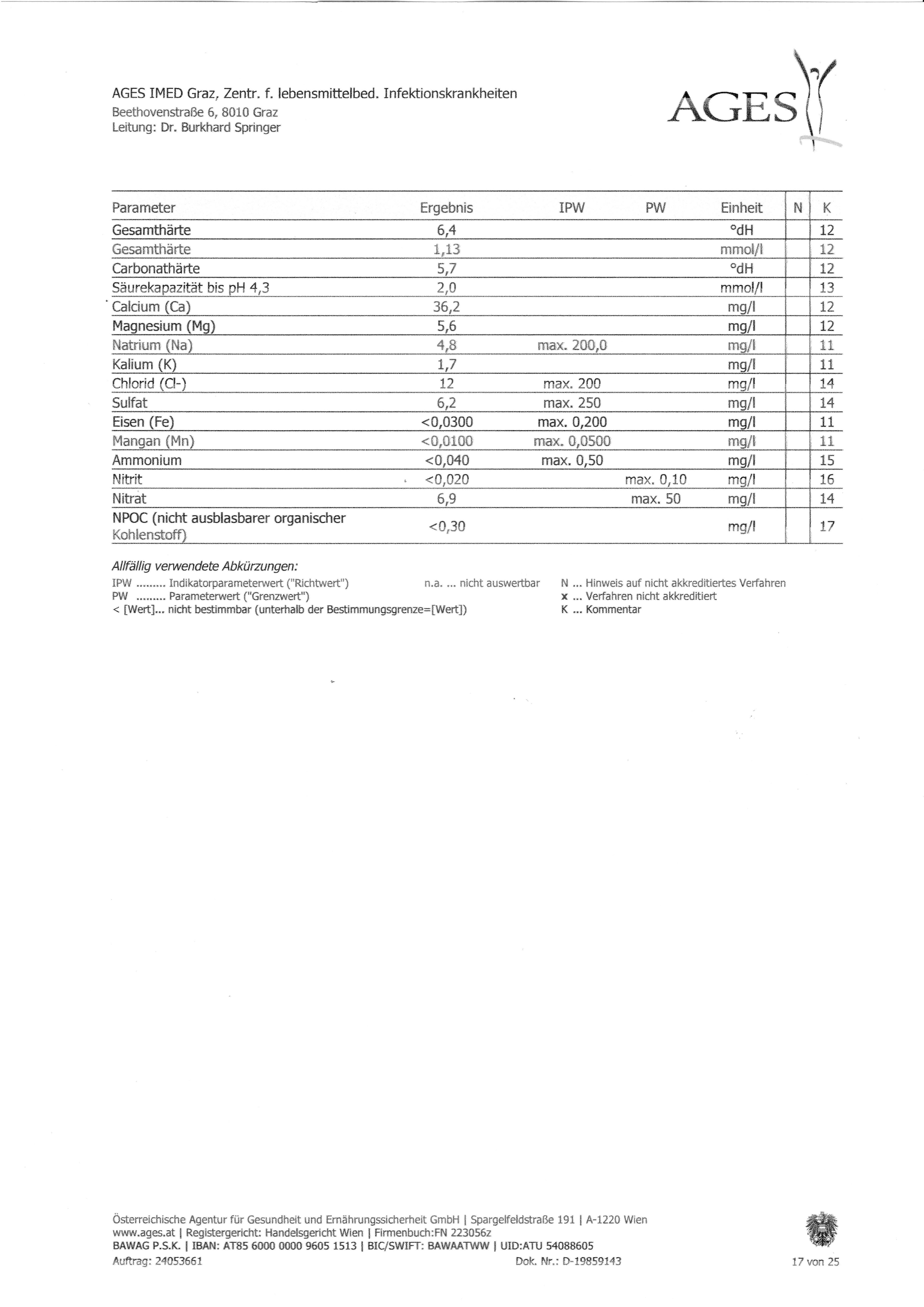 Den aktuellen Prüfbericht der letzten Wasseruntersuchung können Sie hier ansehen.